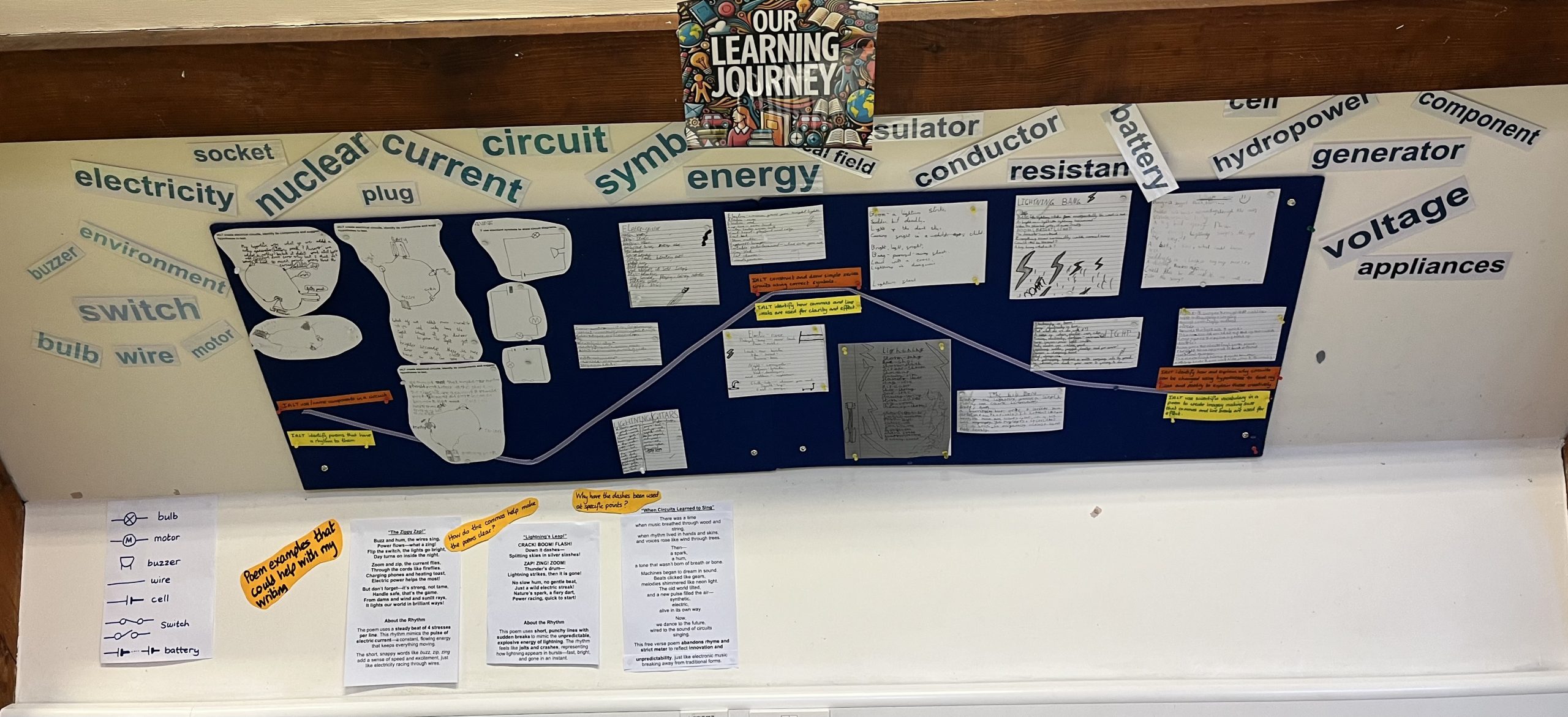 Seatown Class have been investigating how electricity powers our world! We built circuits, tested materials, and learned how to draw scientific diagrams. Inspired by our discoveries, we wrote poems that bring the magic of electricity to life. Come and see our circuits and read our electrifying poems!