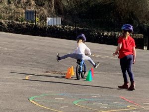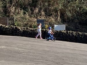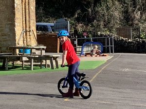 This afternoon Burton were enjoying the lovely, sunny weather and trying out one of our new balance bikes, as well as drawing and building.