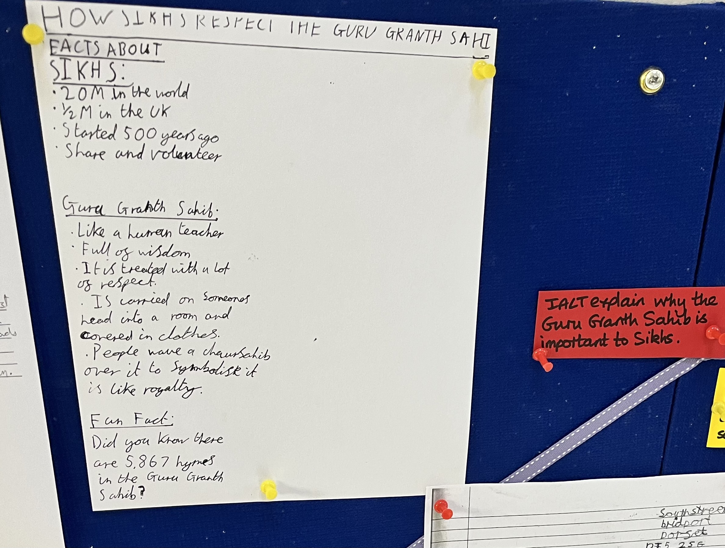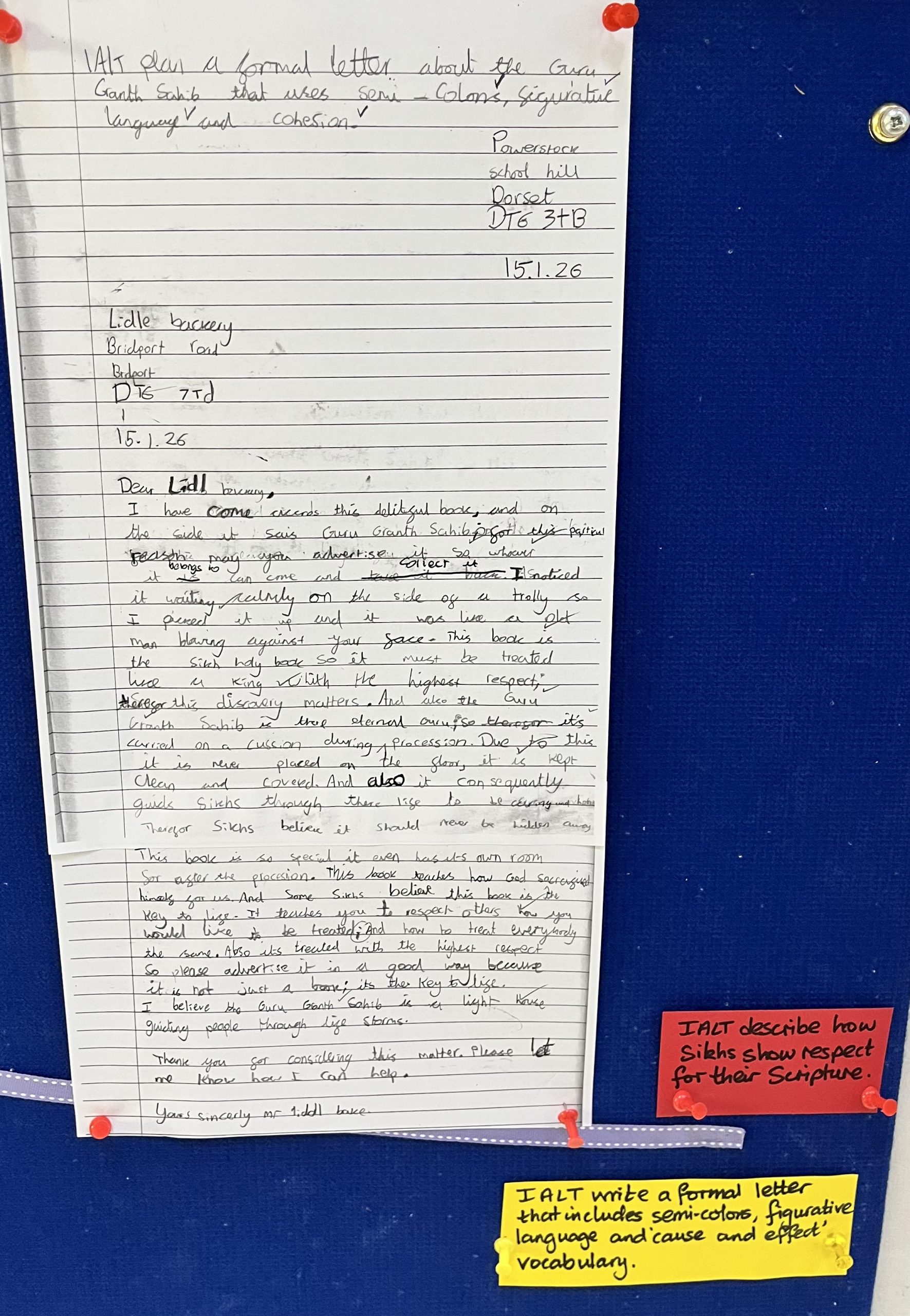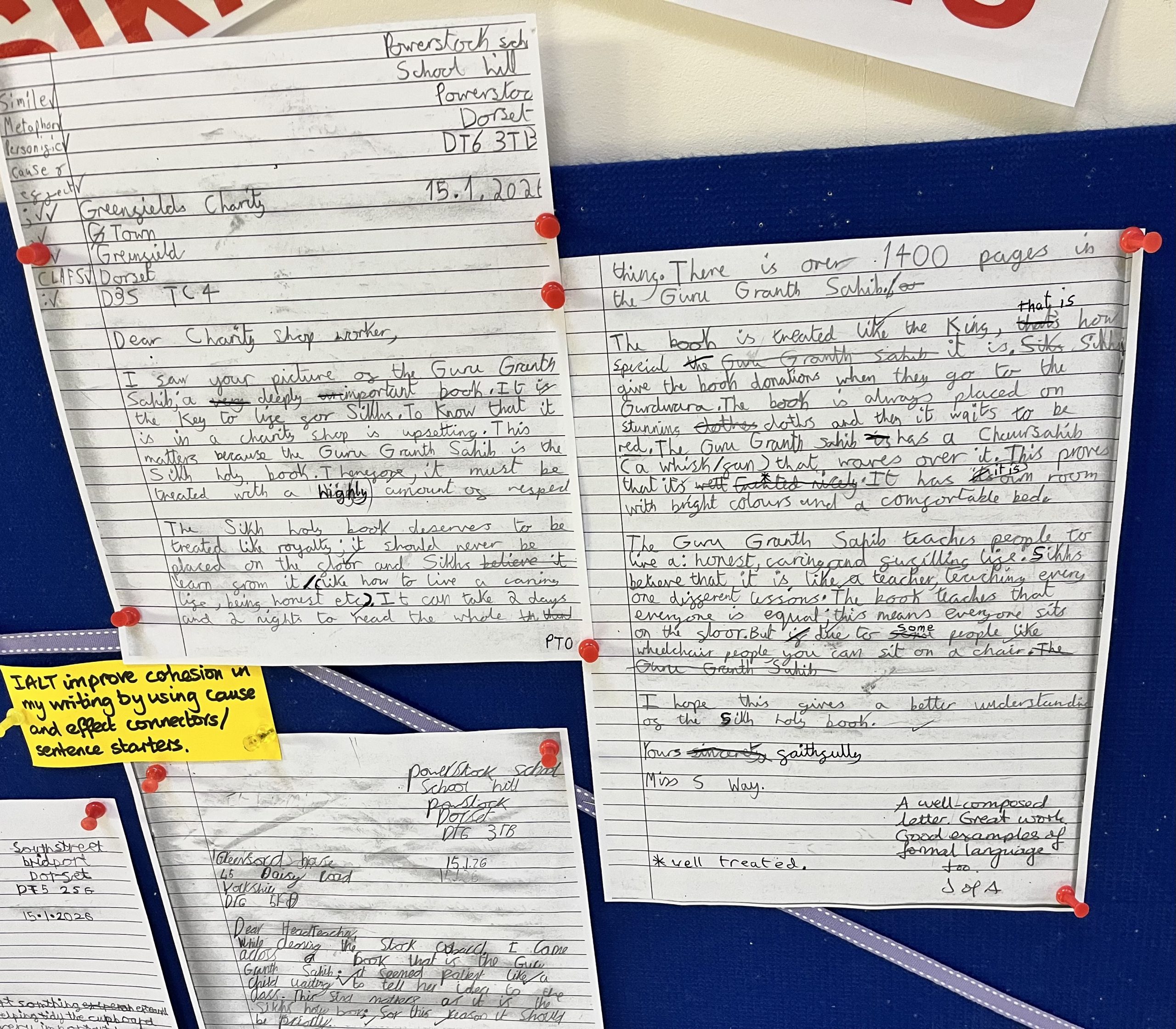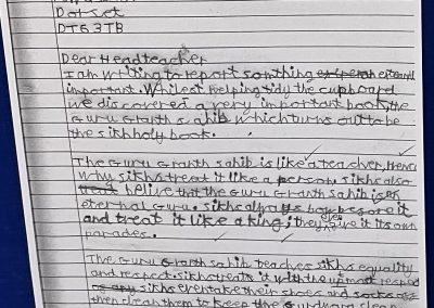 Seatown have been learning about the Guru Granth Sahib and how Sikhs show respect for their holy scripture. We wrote formal letters using greetings, closings, and advanced punctuation.